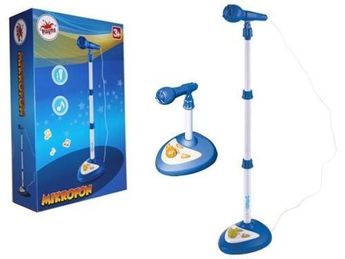 Mikrofon na statywie, efekty dźwiękowe - aplauz, wiwat, melodie demo, regulacja głośności, maksymalna wysokość 90 cm, zasilanie: 4xAA (nie są dołączone)