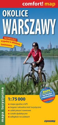 - dwustronnie laminowana, wygodna w składaniu mapa turystyczna okolic Warszawy obejmująca